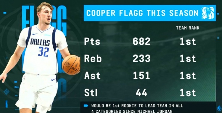 1月8日讯 据统计,本赛季弗拉格有四项数据在队内第一,有望成为继乔丹之后首位作念到这小数的少壮。