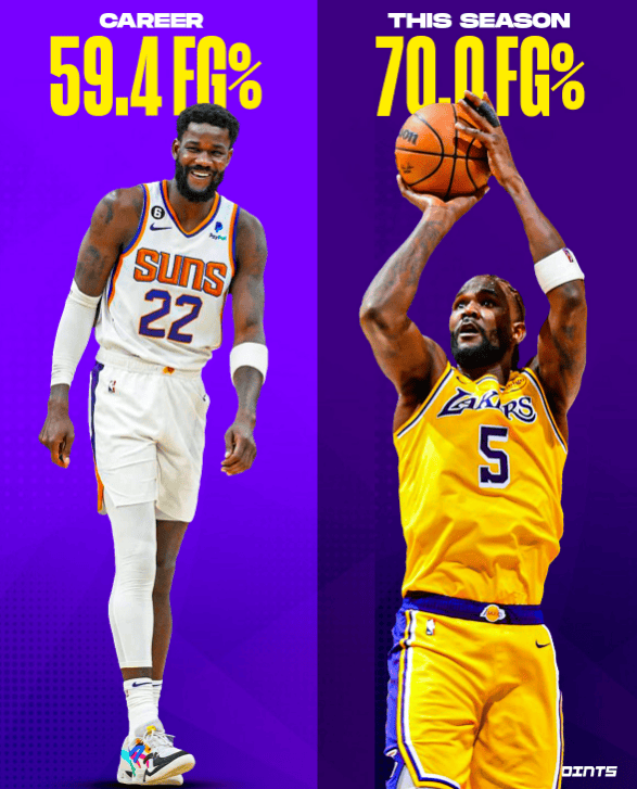 他有望成为队史首位单赛季场均得分15+、投篮掷中率70%以上的球员,他在内线展现出统统的管辖力、效果和掌控力。这无疑是一项悄然创造历史的豪举,他高效得令东说念主难以置信。