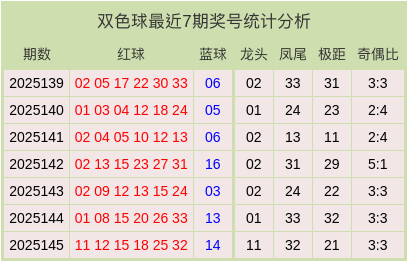 双色球最近7期奖号和数据分析表