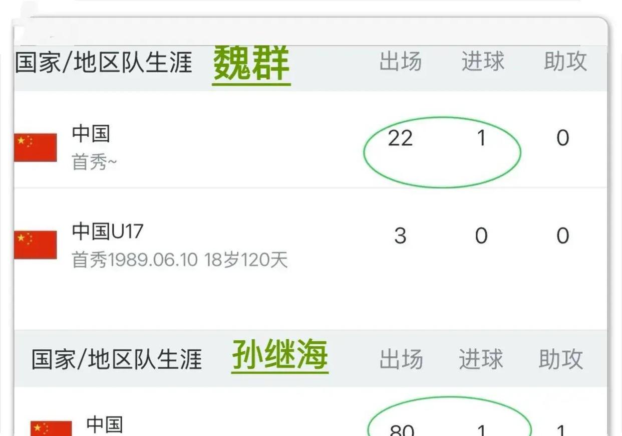 数据偶然候比故事更骄傲。魏群在22场国度队比赛中打入1球,孙继海要花80场才能达到这个进球数。这个对比一度被拿出来为魏群"伸冤",似乎在说:魏群的后果多高啊。