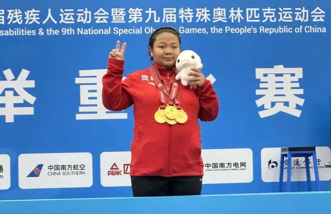 特奥举重女子90公斤级以上决赛中,显露员曲尼格桑夺得4枚金牌。