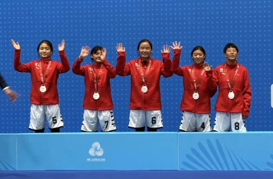 特奥轮滑个东谈主100米(12-15岁组)决赛中阿吉拉珍和次仁顿珠取得金牌。