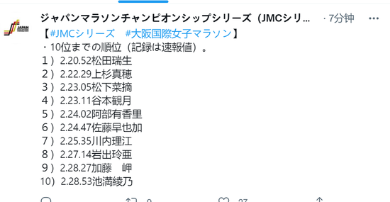 她最终的完赛获利为2小时20分50秒,刷新了个东说念主最佳获利,也刷新了赛会记录,同期成为日本历史上跑的第5快的选手,现役仅次于一山麻绪。上一轮的奥运周期,跑出2小时21分,松田瑞生却缺憾只可手脚奥运马拉松的替补,新一轮的奥运周期开动了,她的首秀足以评释她的决心。