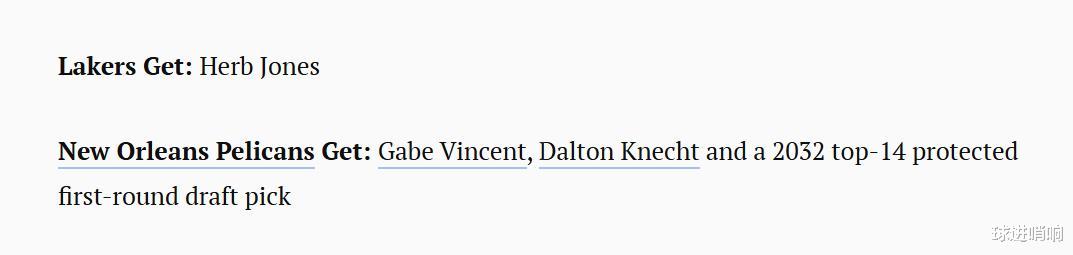 鹈鹕得到:文森特+克内克特+湖东谈主32年前14顺位保护首轮签。