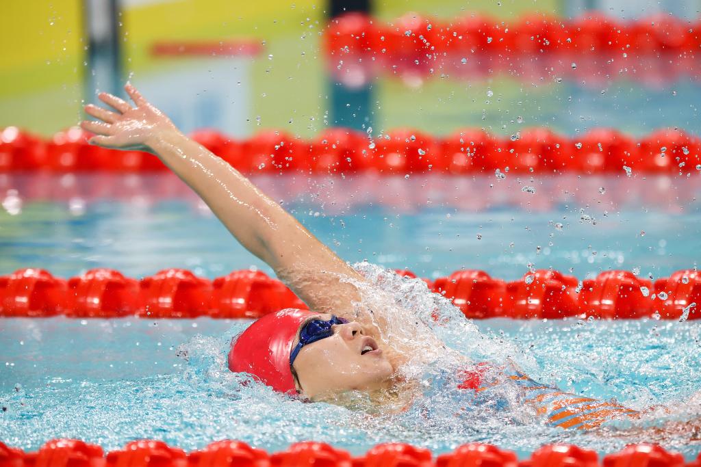 12月10日,山东队选手彭惠迪在女子100米仰泳S15级决赛中,最终,她获取冠军。新华社记者 梁旭 摄