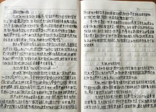 “先作念、才有发言权”,“多花时代成长我方、少花时代帮手别东说念主”,“每天告诉我方一次、我真的很可以”,“再长的路、一步步也能走完”,“男东说念主的东说念主生从勤苦启动”……在陈浩家,记者发现三个条记本,上头密密匝匝抄满了著作、笔迹十单干致。近两年,陈浩每天还会花几个小时练字,抄写著作,他说我方读的书少,咫尺一有钱就会买书,看书、练字,抄写的著作还可以激勉我方,充实我方,学习的历程很是答允。