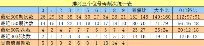 上期总结:摆列三第2025336期开出奖号412,号码012路比为0:2:1,奇偶比为1:2,大小比为0:3,和值为7,跨度为3。