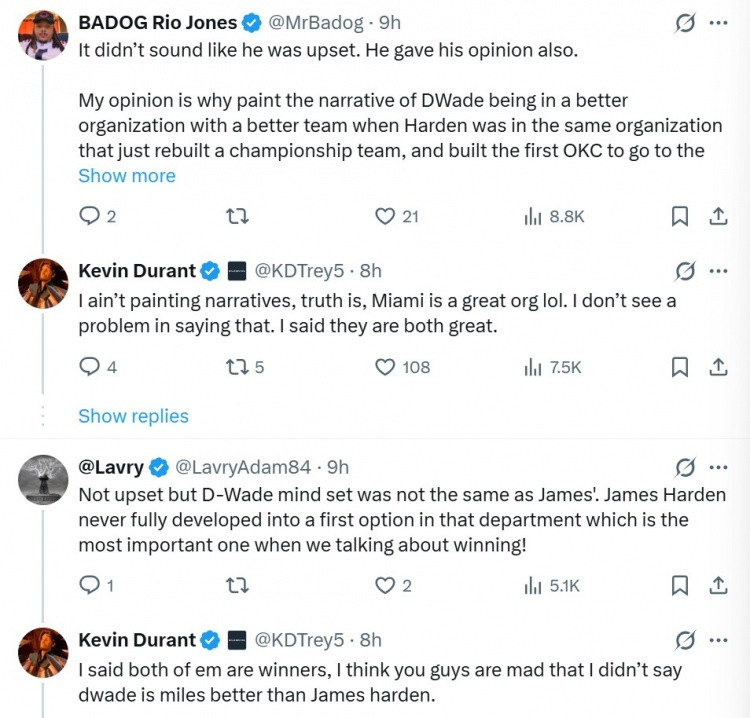 杜兰特:我说他们俩都是赢家,我以为你们不满是因为我莫得说韦德比詹姆斯·哈登强多了。