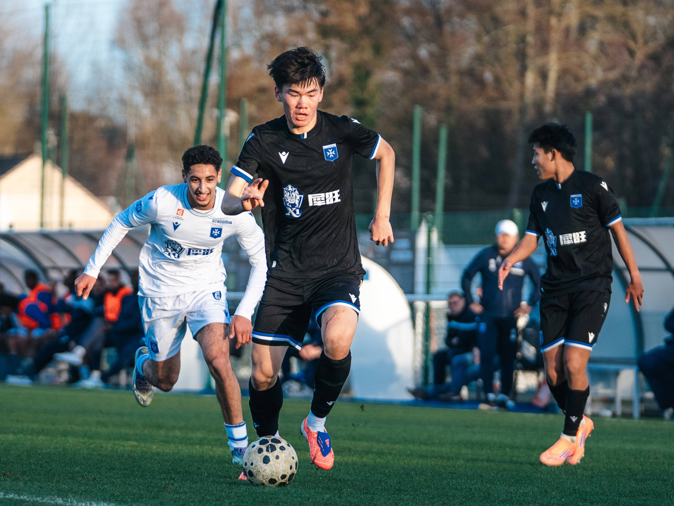 12月9日,在法国欧塞尔,中国犀旺队球员尚天羽(前)在法国足协“但愿挑战赛”比赛中带球。新华社发(欧塞尔俱乐部供图)郝伯也以为,国内青少年球员比赛数目和质地与欧洲存在差距,这在一定进程上影响了球员赴欧后的节拍妥当和信心建立。“欧洲这边竞争热烈,淘汰率高,相似齐是外助,如若你刚初始就够不上教育要求或无法妥当,背面很难再取得契机。”