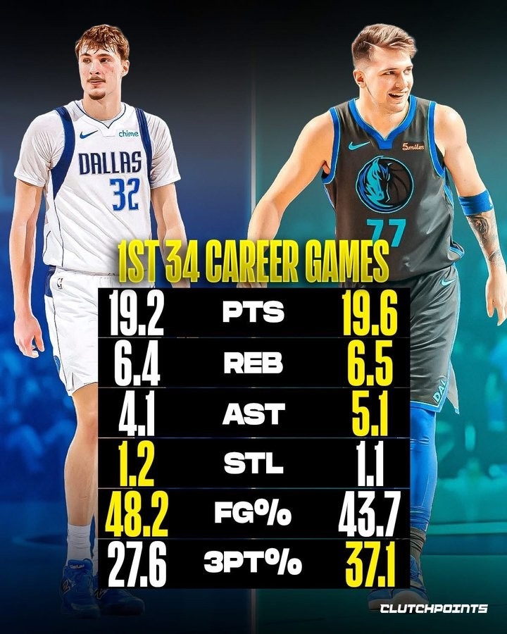 好意思媒对比了弗拉格和东契奇在菜鸟赛季球队前35场比赛的数据对比,正值的是两东谈主王人在35场比赛里出战34场,数据如下: