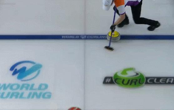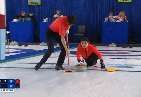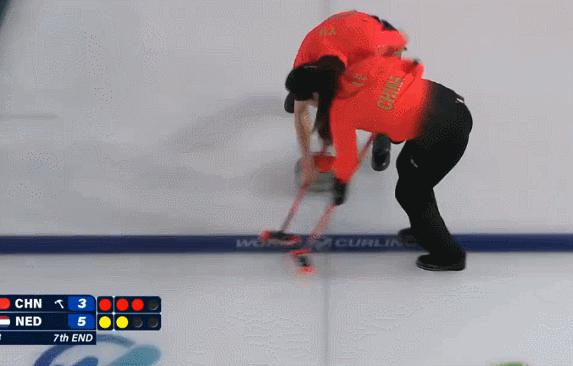 第二局:能看出中国搭档今天的情景不是很好,红壶投掷不算到位;但荷兰队也慢热,给了中国控分契机;这一局他们也只拿到 1 分。