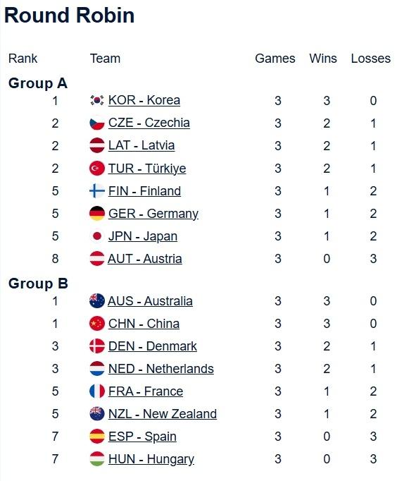 另外几场比拼里,澳大利亚以 9-4 轻取西班牙,与中国比肩 B 组第一!丹麦也拿下了匈牙利,排在第三位;以上两队齐是中国冲击小组前二的主要敌手。