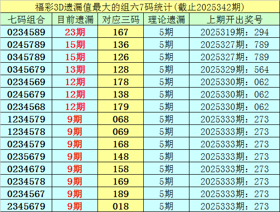福彩3D七码遗漏组六分析(第2002001期-第2025342期)