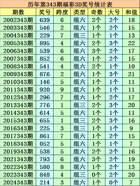 积年第343期福彩3D同时奖号为:639 - 546 - 229 - 895 - 539 - 852 - 541 - 876 - 146 - 920 - 296 - 776 - 614 - 655 - 225 - 861 - 052 - 538 - 793 - 580 - 848 - 214。