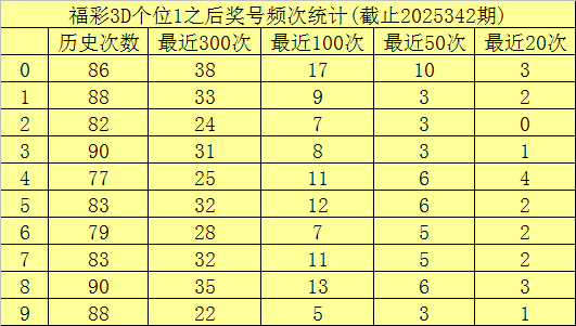 个位杀号:上期个位奖号为1,历史上个位奖号1共开出847次,最近100次个位奖号1出刻下,其下期号码0-9开出次数永别为:奖号0开出17次,8开出13次,5开出12次,4、7开出11次,1开出9次,3开出8次,2、6开出7次,9开出5次。
