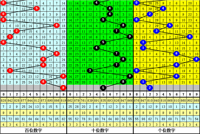 百位杀号:上期百位开出号码6,历史上百位号码6已开出873次了,最近100次百位号码6出现之后,其下期各号码频次永别为:号码0出现14次,1出现13次,4、8出现12次,6出现11次,2出现10次,3、7出现8次,5、9出现6次。