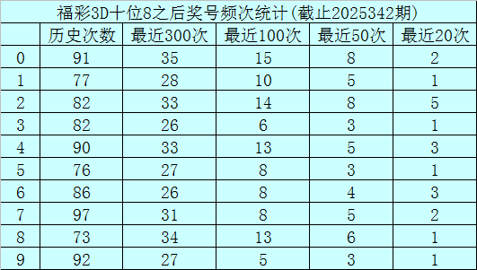 十位杀号:上期十位奖号为8,历史上十位奖号8共出现847期,前100次十位开出奖号8时,其下期0-9奖号频次永别为:奖号0开出15次,2开出14次,4、8开出13次,1开出10次,5、6、7开出8次,3开出6次,9开出5次。