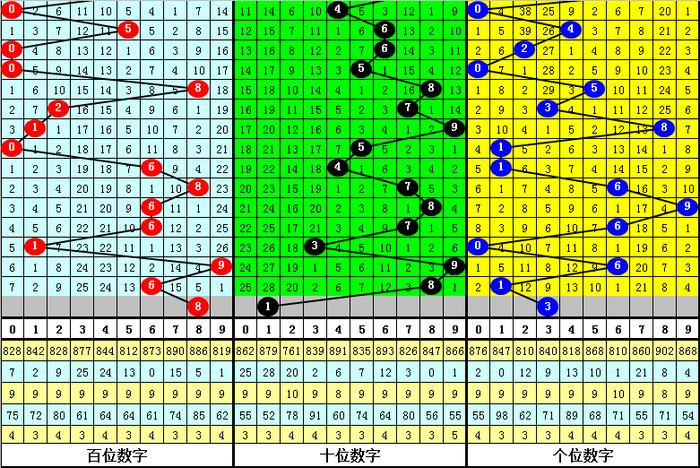 3、组选号码012路比为62:46:83,其中0路号码轮空9期,1路号码轮空13期,2路号码轮空8期,本期012路比参考1:1:1组合。